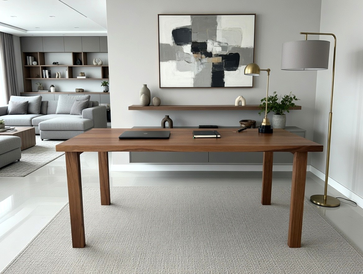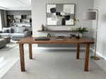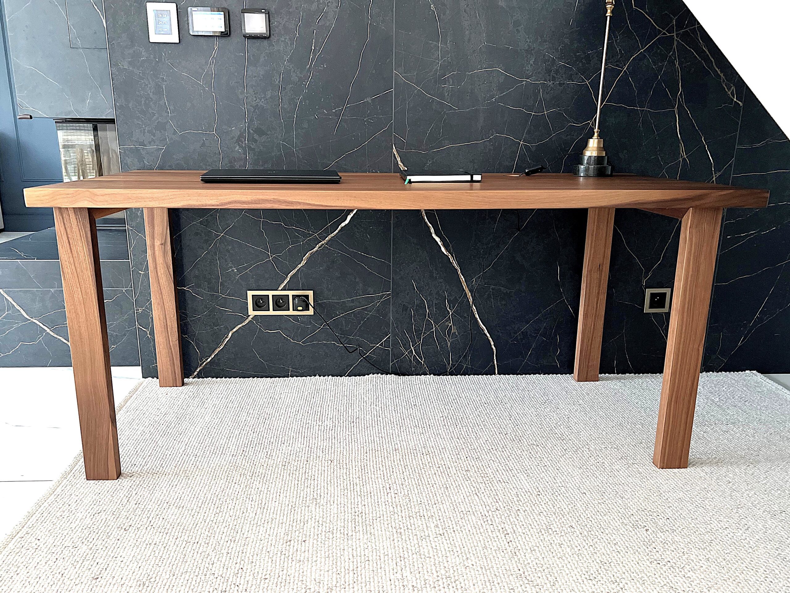 Luca to biurko wykonane z litego orzecha amerykańskiego. Konstrukcja oparta na mocnych nogach klejonych pod kątem 45 stopni. Gruby 4-centymetrowy blat gwarantuje wytrzymałość i komfort użytkowania. Biurko to łączy w sobie klasyczne piękno drewna z nowoczesną formą