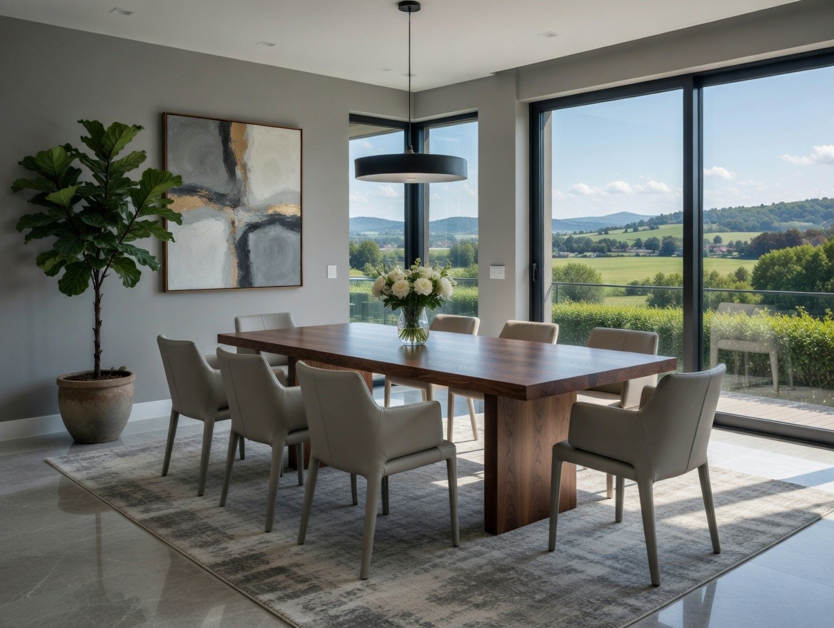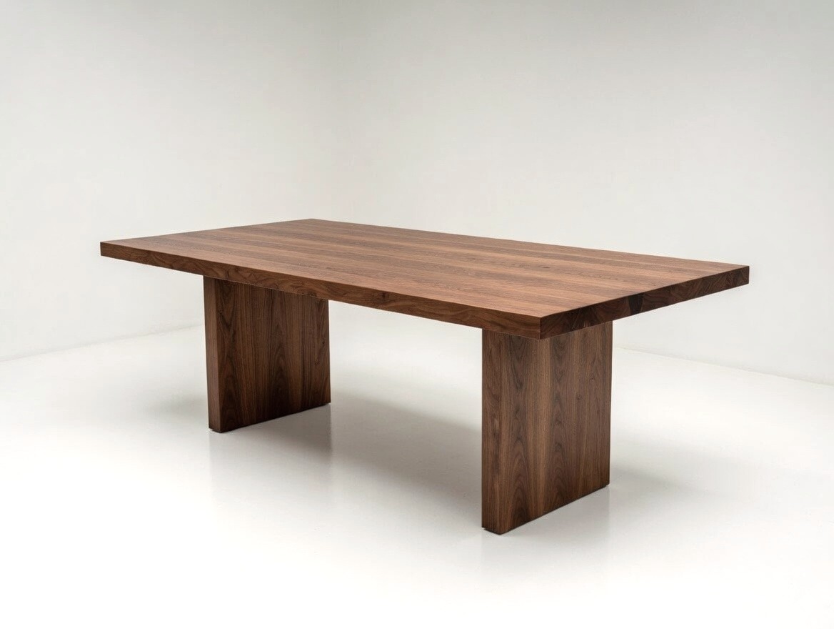 – Materiał: stół w całości wykonany z litego orzecha amerykańskiego klasy A. Drewno charakteryzuje się jednolitą strukturą i brakiem wad. Dopuszczalne są drobne, pojedyncze sęki wypełnione czarną masą, podkreślające naturalny charakter mebla