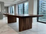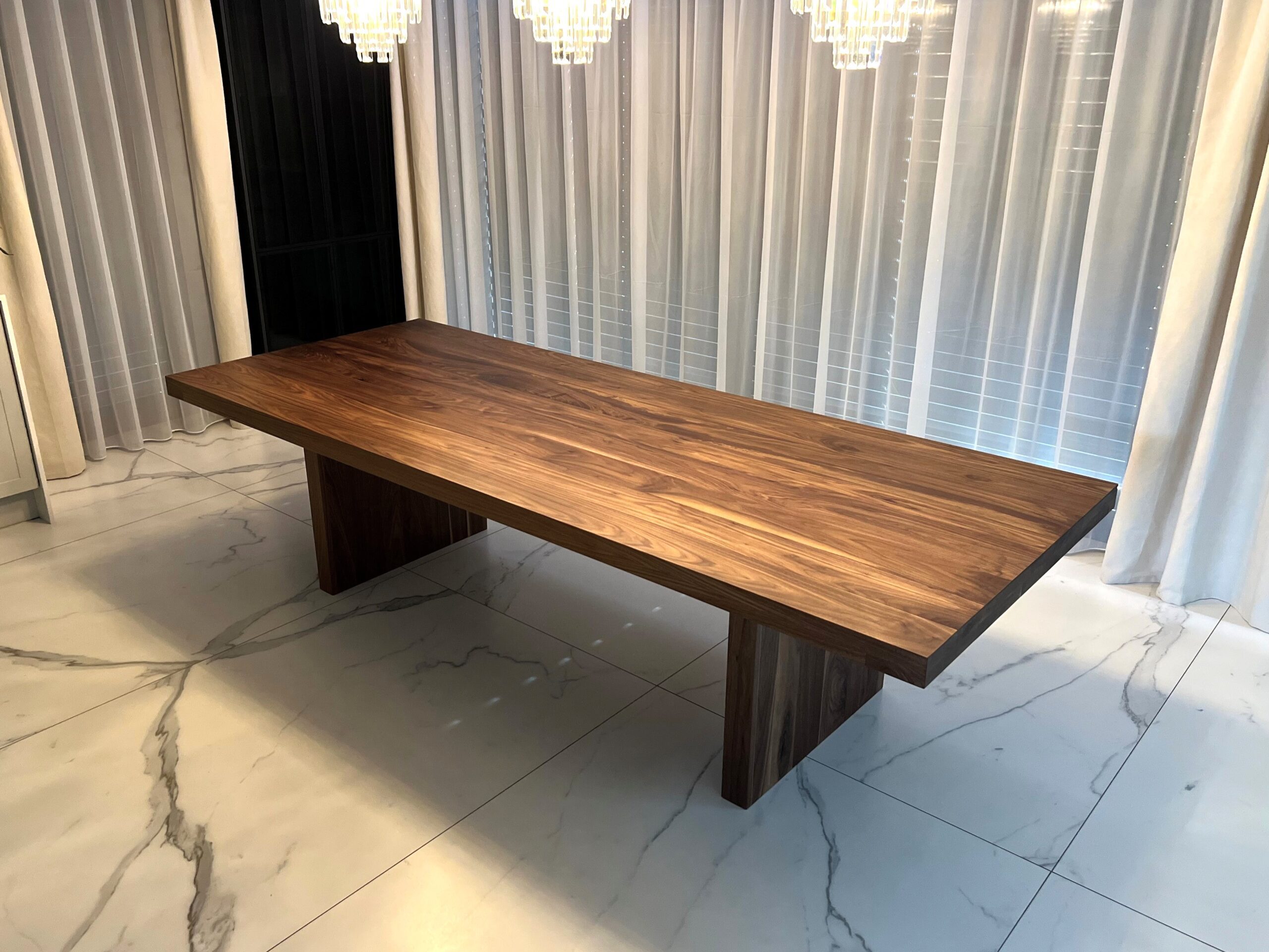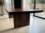 Wybierając ten mebel inwestujesz w piękno i jakość. To nie tylko wybór który jest praktyczny i używany codziennie, ale również ozdobi Twoje wnętrze. Blat wykonany z orzecha amerykańskiego o grubości 40 mm, pogrubiany do 80 mm. Do wykończenia stołu używamy wosku twardego olejnego, który podkreśla naturalne piękno drewna, jedocześnie zapewniając odporność na wodę, soki czy wino