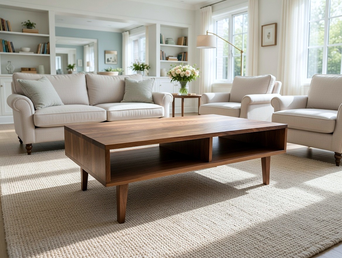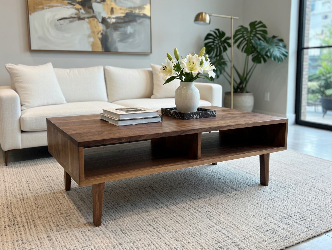 Stolik kawowy z litego orzecha amerykańskiego to połączenie naturalnego piękna drewna, precyzyjnego wykonania oraz ponadczasowego designu. Każdy egzemplarz wykonywany jest z najwyższej klasy materiałów, dzięki czemu stolik stanowi zarówno funkcjonalny mebel, jak i wyjątkową ozdobę wnętrza