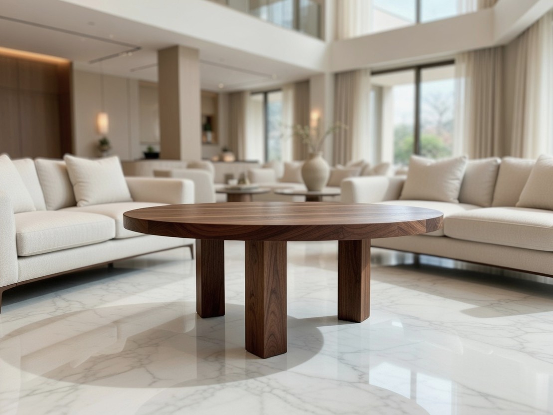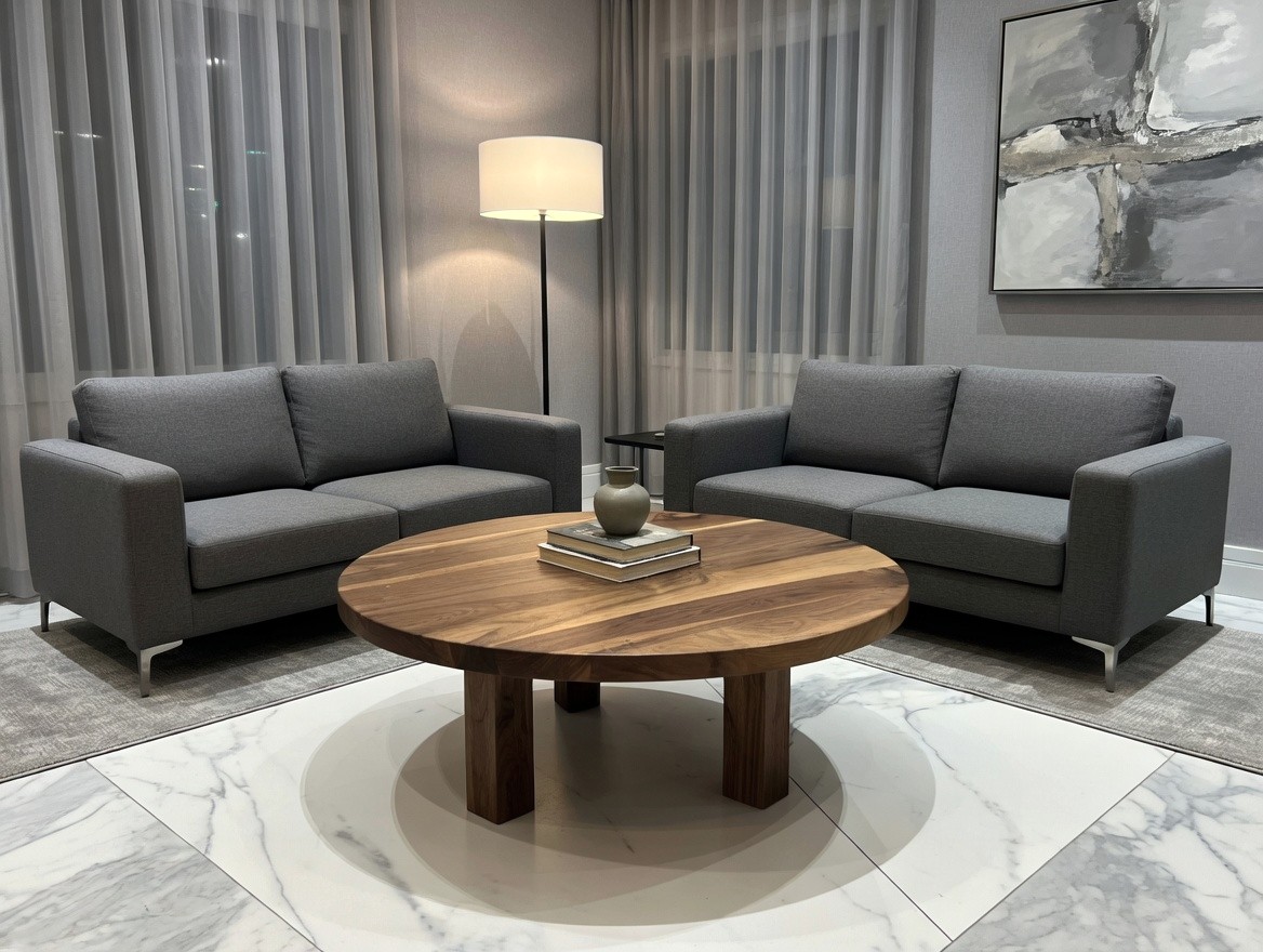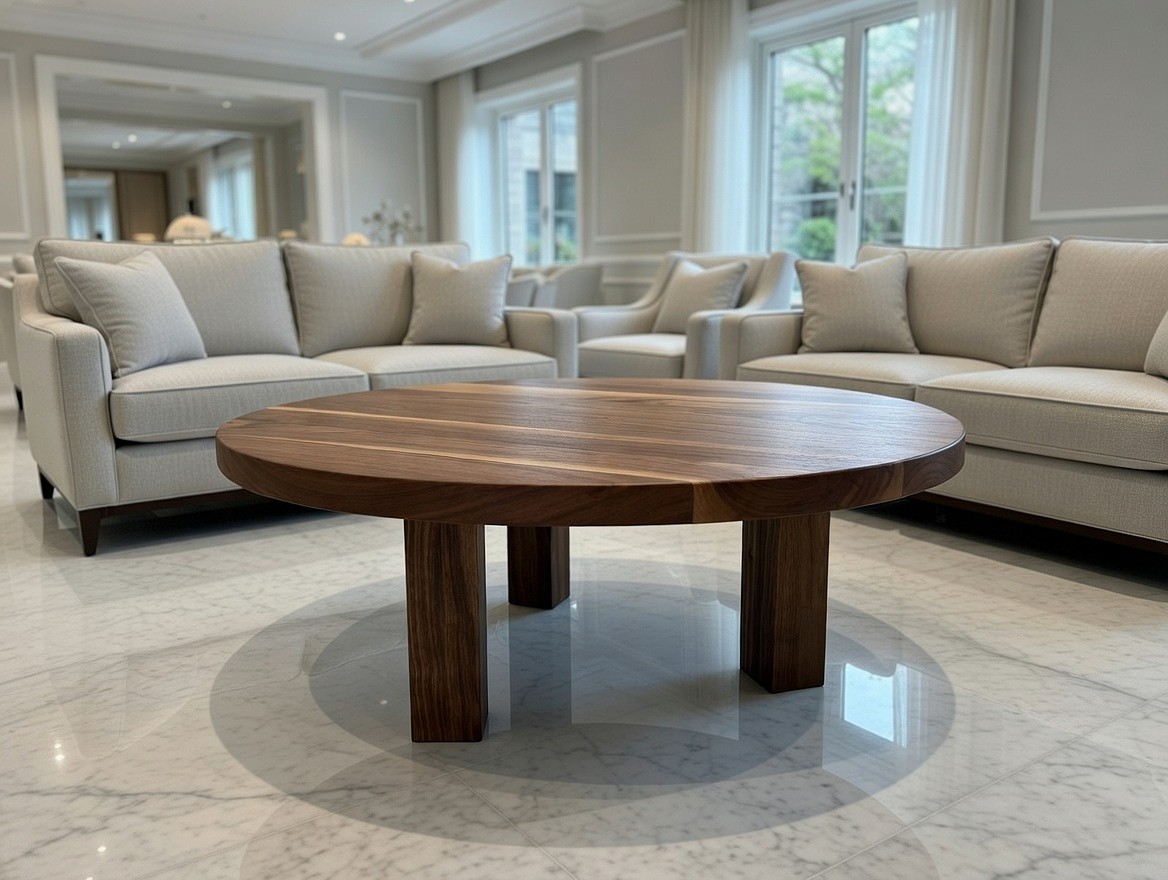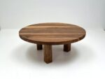 – Materiał: stolik w całości wykonany z litego orzecha amerykańskiego klasy A. Drewno charakteryzuje się jednolitą strukturą i brakiem wad. Dopuszczalne są drobne, pojedyncze sęki wypełnione czarną masą, podkreślające naturalny charakter mebla
