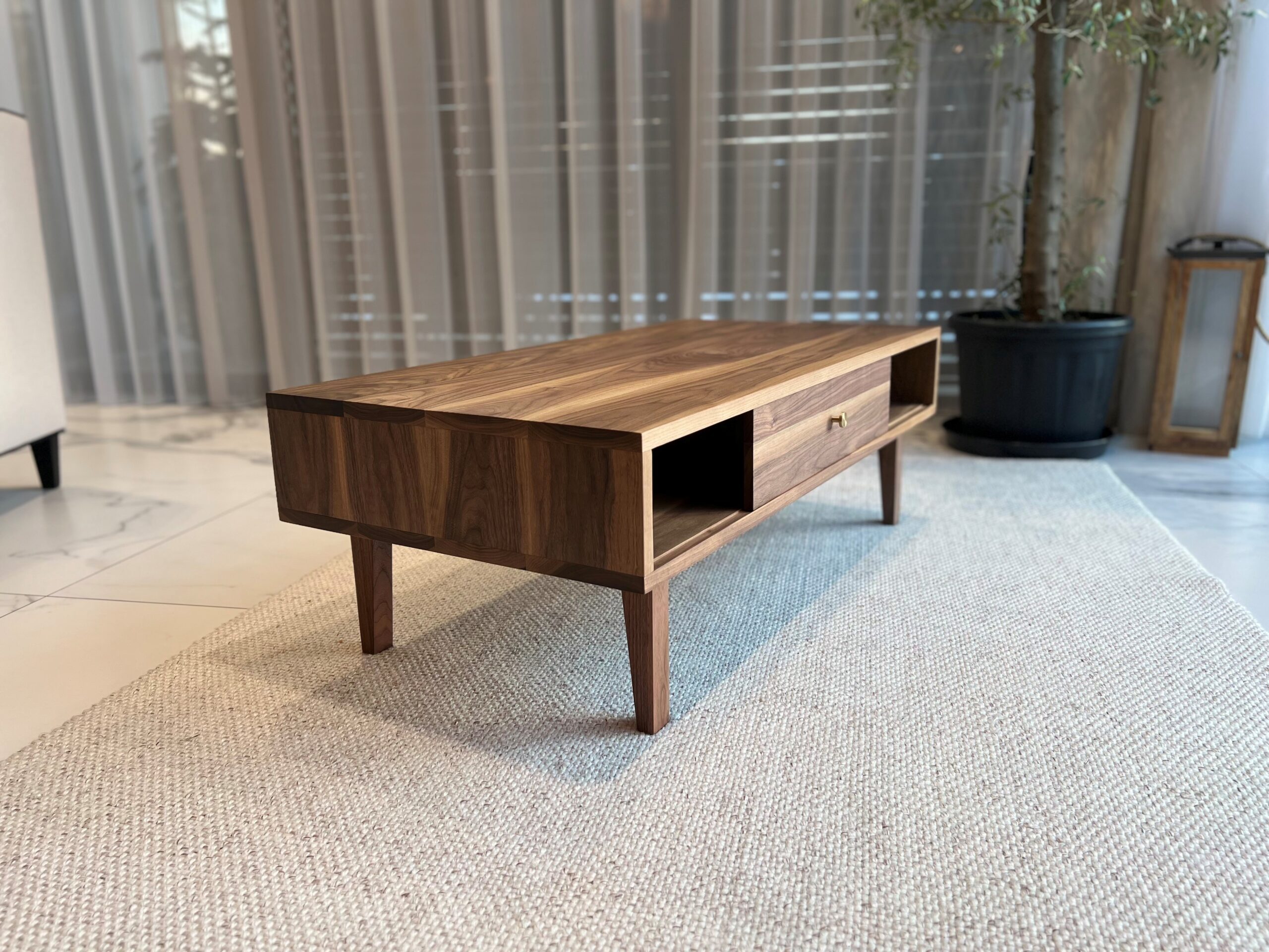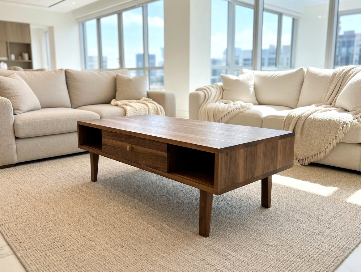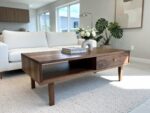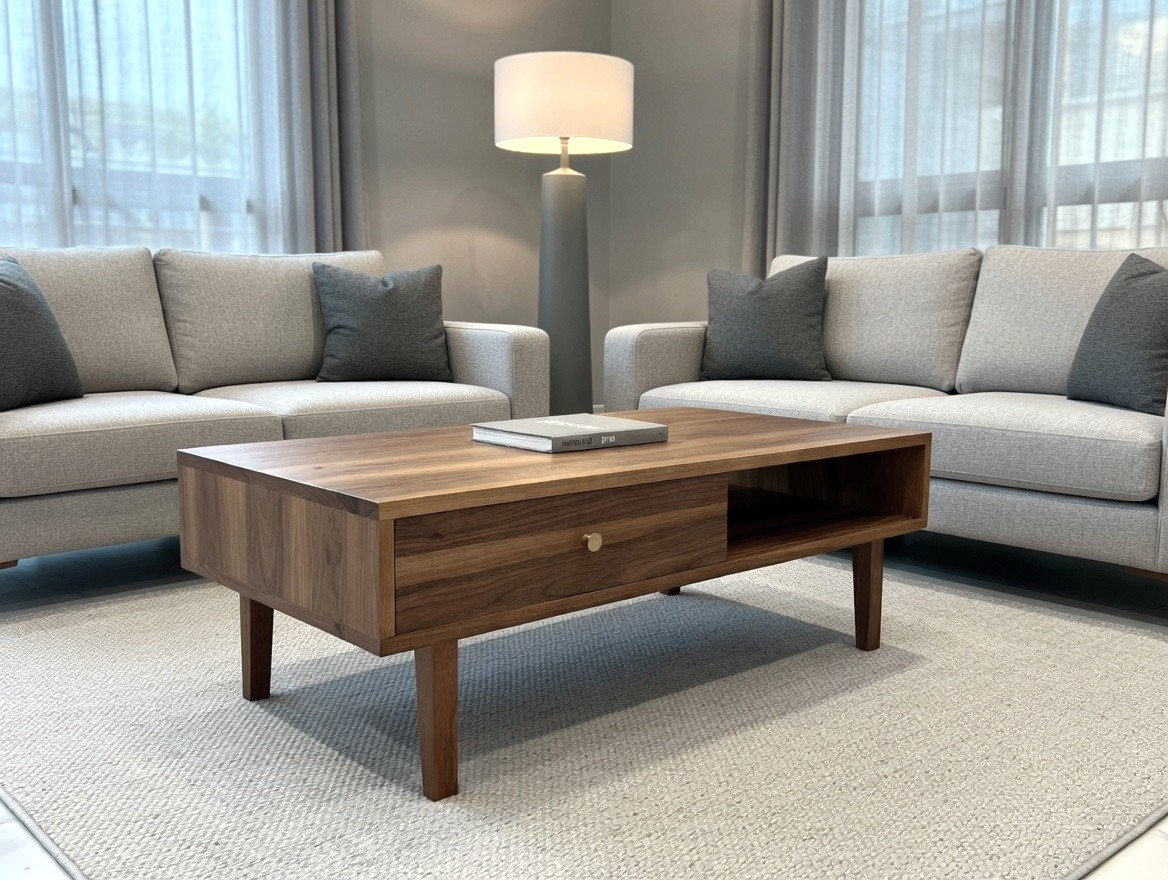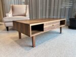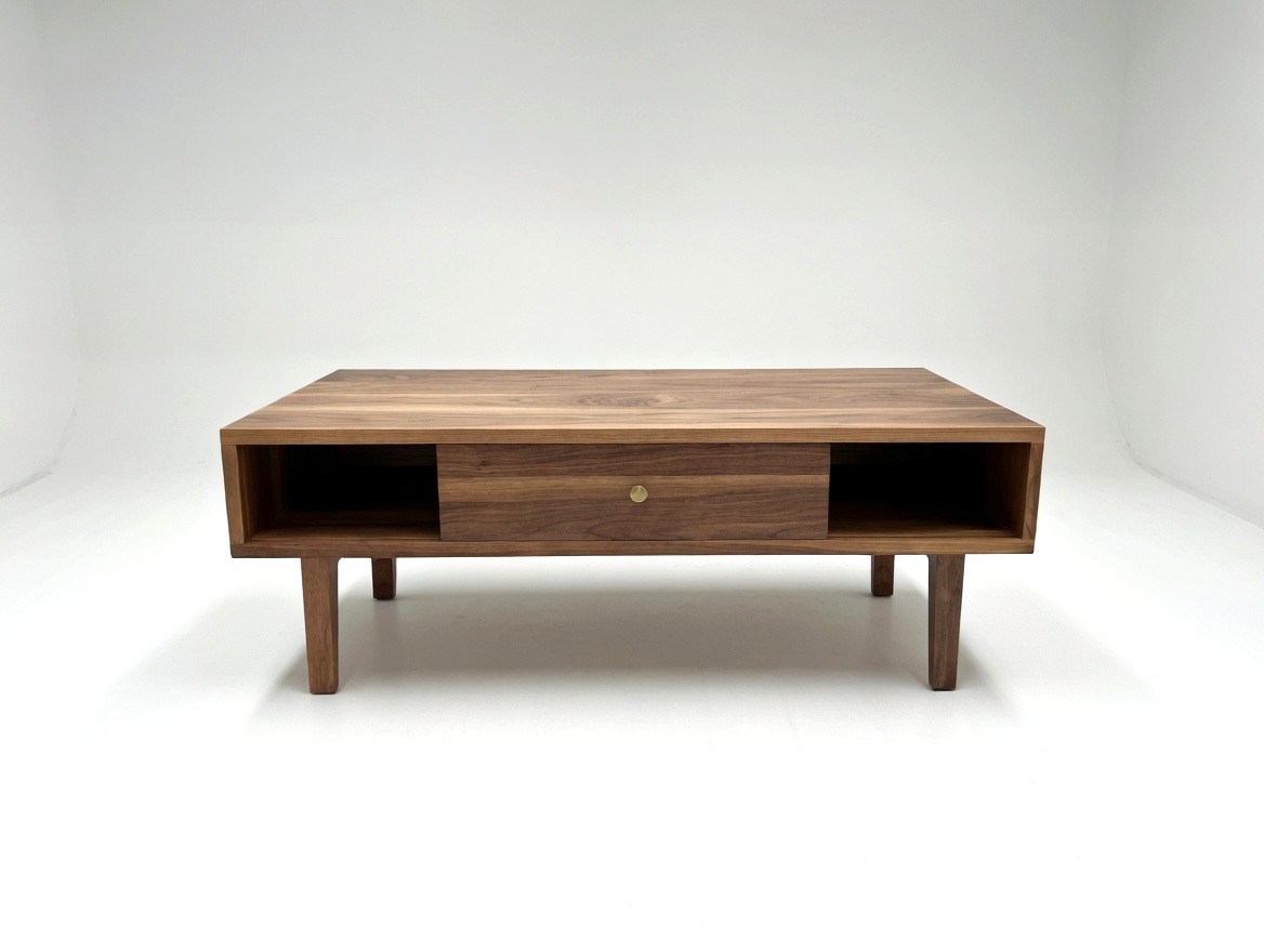Stolik kawowy z litego orzecha amerykańskiego to połączenie naturalnego piękna drewna, precyzyjnego wykonania oraz ponadczasowego designu. Każdy egzemplarz wykonywany jest z najwyższej klasy materiałów. Posiada drzwiczki przesuwne po obu stronach, które można w każdej chwili łatwo wyciągnąc i włożyć z powrotem