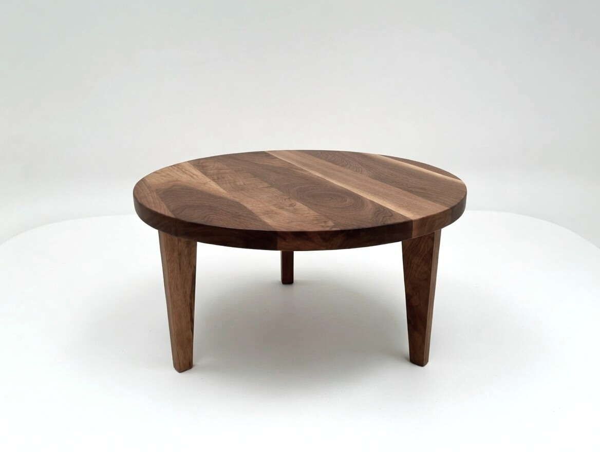 – Materiał: stolik wykonany z litego orzecha amerykańskiego klasy A. Drewno charakteryzuje się jednolitą strukturą i brakiem wad. Dopuszczalne są drobne, pojedyncze sęki wypełnione czarną masą, podkreślające naturalny charakter mebla