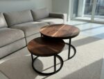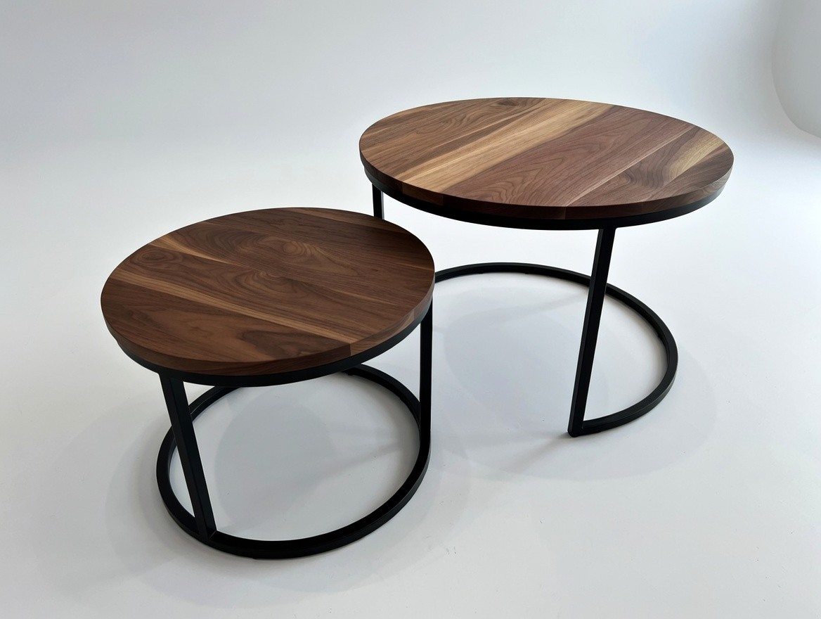 Zestaw dwóch stolików loftowych z blatami wykonanymi z litego orzecha amerykańskiego. Unikalny industrialny design, solidna konstrukcja i wszechstronne zastosowanie. Idealny mebel do salonu, biura